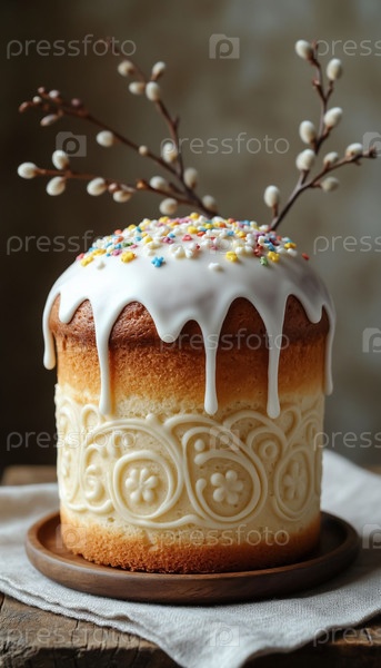 Традиционный российский пасхальный куличный торт с белым глазурем Праздничная сладкая хлебная выпечка