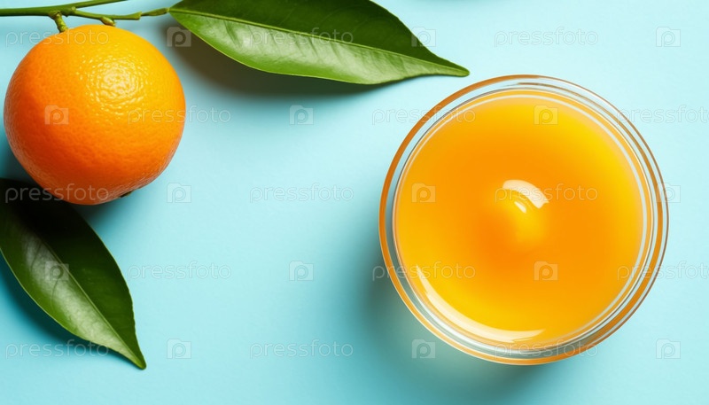 Оранжевый гель для тела Естественная косметическая одежда в банке Пастельный голубой фон