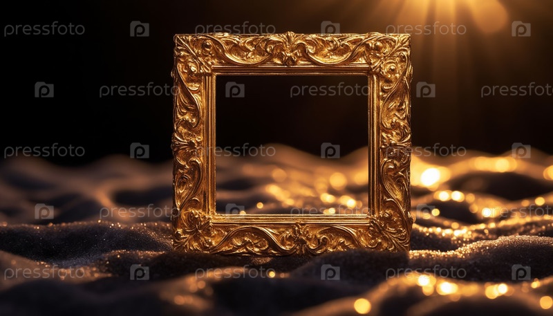 Металлический золотой орнаментированный каркас на темном фоне