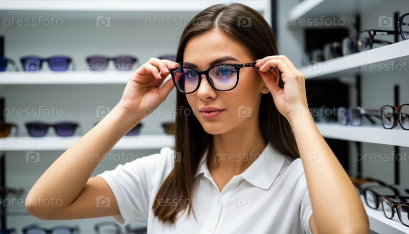 Оптическая продавщица в современном профессиональном магазине очков