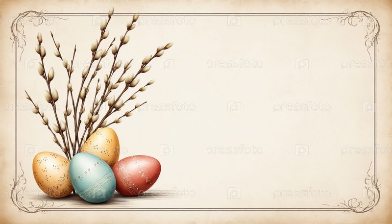 Игральный шаблон пасхальных открыток с вытянутыми яйцами и декоративной рамой для пользовательского сообщения