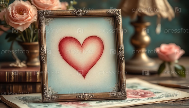 Сердце в раме для любителей Винтажный пастельный стиль Старая бумага Романтическая карта Шаблон