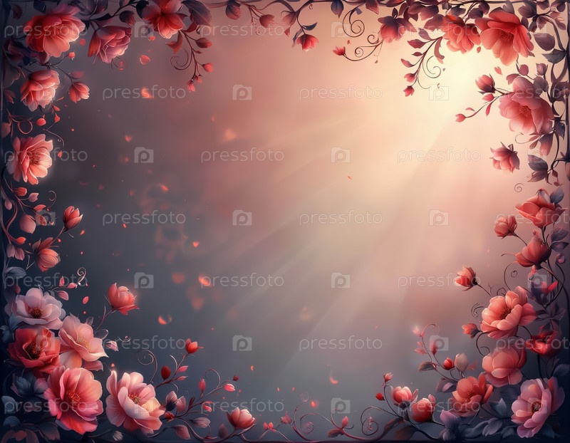 Премиальный романтический фон с цветочной рамой в розовых и красных тонах для маркетинговых материалов