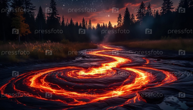 Вспышка протекающей лавы Драматический ландшафт