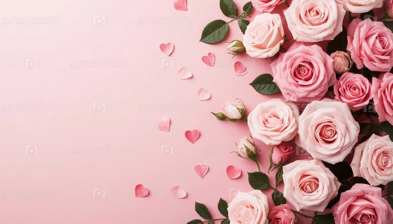 Романтика Розовый фон Розы Копировать пространство на стороне
