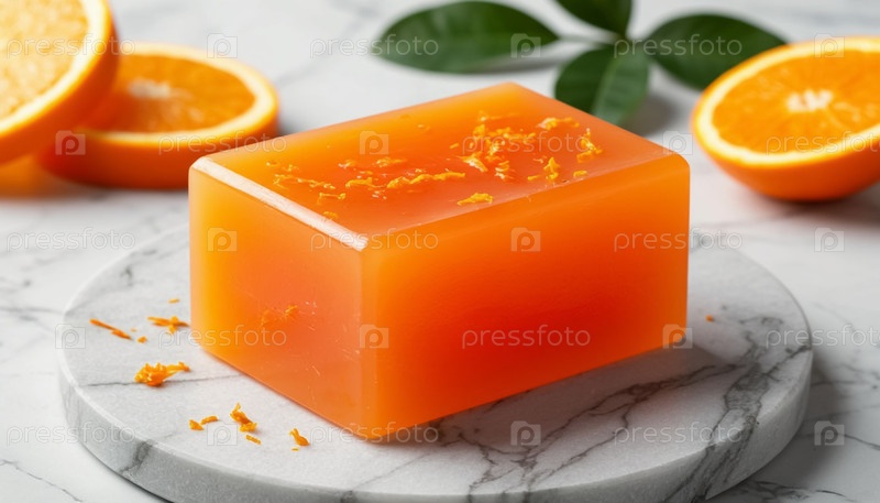 Оранжевый кусок мыла на мраморном фоне