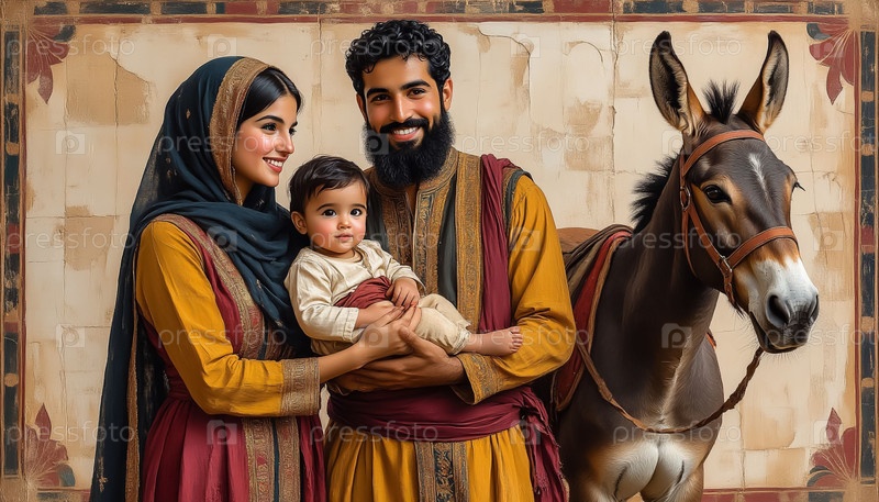 Фреска в египетском стиле, изображающая путешествие Святой семьи по Египту