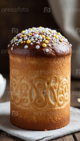 Традиционный российский пасхальный куличный торт с белым глазурем Праздничная сладкая хлебная выпечка