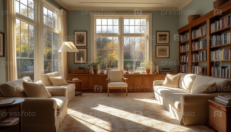 Солнечное освещение Комфортная гостиная Интерьер теплый
