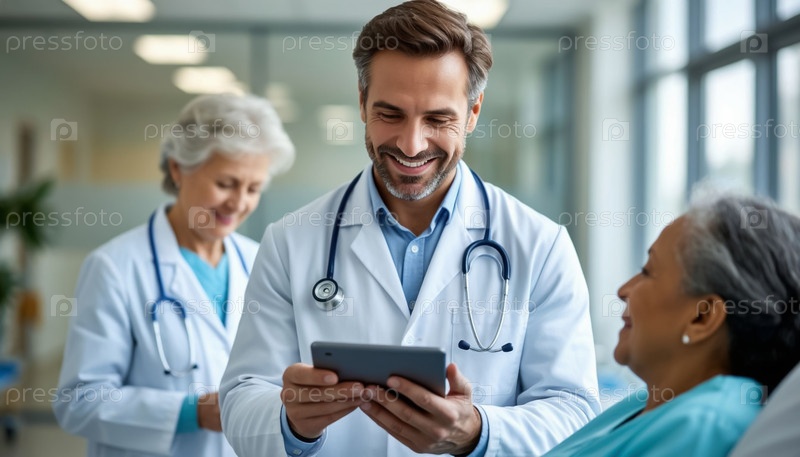 Медицинский работник, использующий планшет для поддержки ухода за пожилыми пациентами