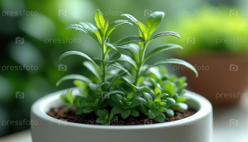 Горшечное растение Летняя природа Зеленый фон Мягкий солнечный свет
