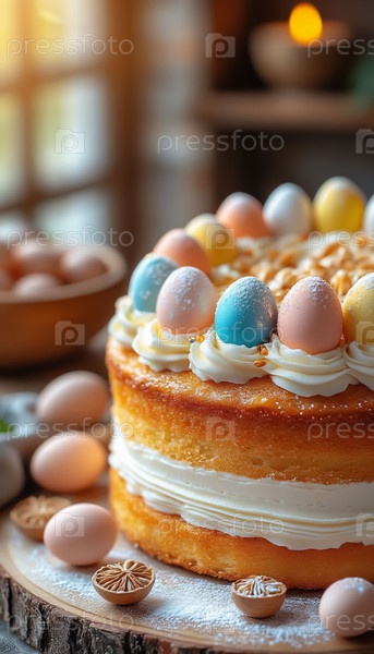 Пасхальный кулич на столе, традиционная праздничная выпечка