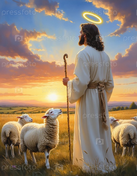Иисус Христос Добрый Пастырь Цифровая живопись Христианское искусство