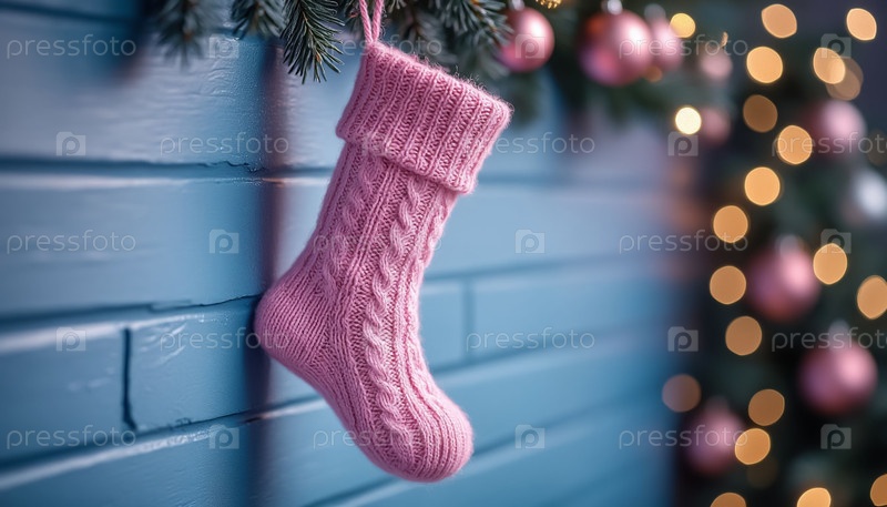 Ручной вязаный носок на нейтральном фоне праздник