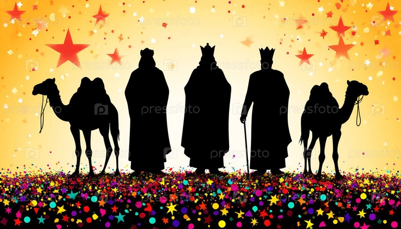 Силуэт трех мудрецов на звездах Конфетти Рождественская сцена