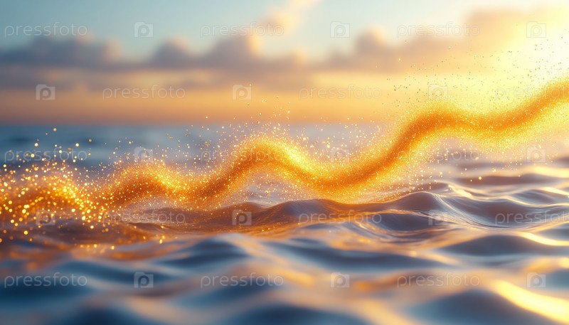 Сверкающая легкая текстура с золотыми искрами и потоками циановых энергетических волн