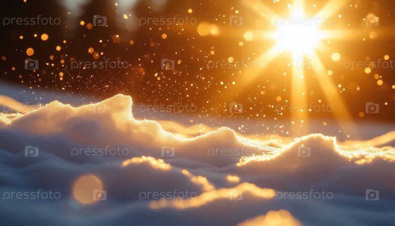 Солнечные лучи Боке на сверкающей снежной поверхности