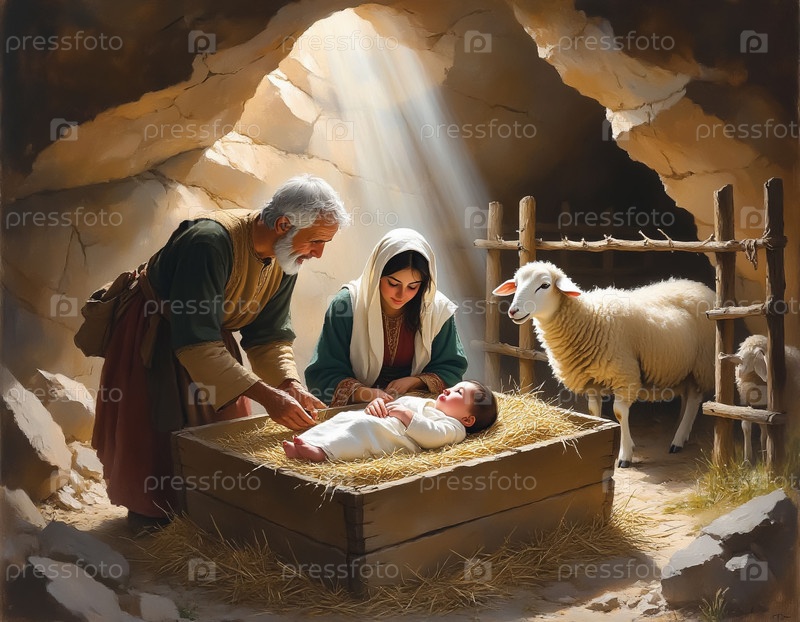 Святая Рождественская Семья в пещерном ночном флаге
