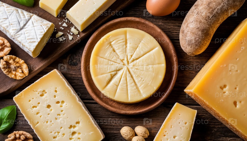 Сортированный сорт сыра верхний вид на деревянном столе, фотография еды