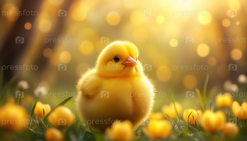 Цифровая иллюстрация Золотой пасхальный цыпленок праздничный плакат