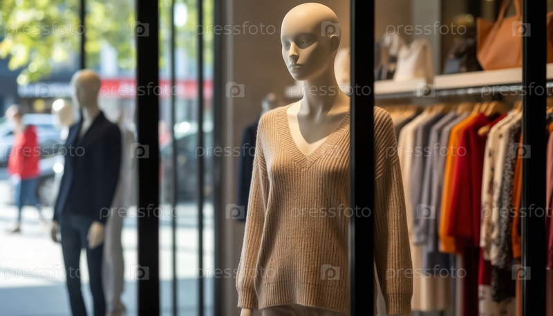 Магазин одежды Окно модного дисплея Вид с улицы