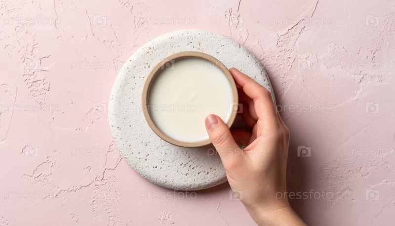 Top View Женские руки, держащие белую косметическую банку Минималист