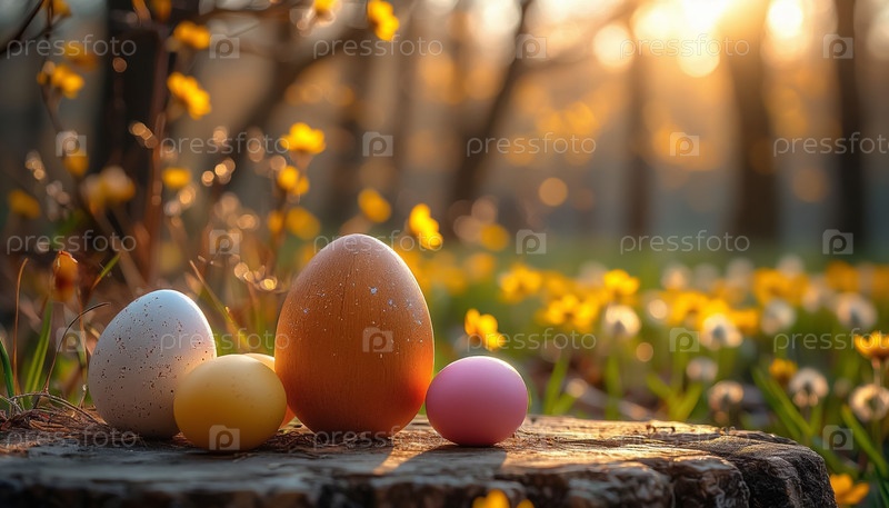 Пасхальные яйца естественный натюрморт, органическая композиция праздников