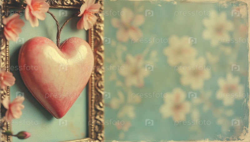 Расстроенный античный каркас сердца на пастельном фоне для пар ретро дизайн