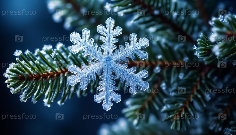 Макро снежинка на елке в зимний период