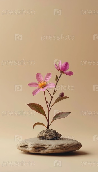 Цветочное растение на пастеле бежевый фон вертикальный шаблон истории для социальных сетей