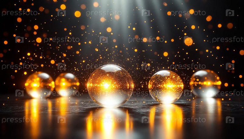 Четкие круглые сферы с теплым внутренним оранжево-золотым освещением в темноте