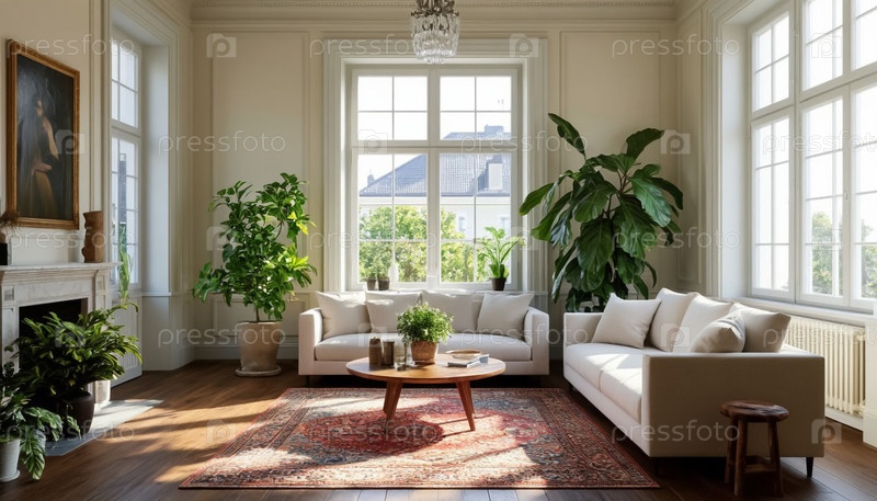 Гостиная на солнечный день Bright Living Room on Sunny Day Interior