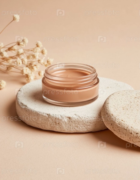 Косметика на бежевом фоне: бронзерный крем в банке