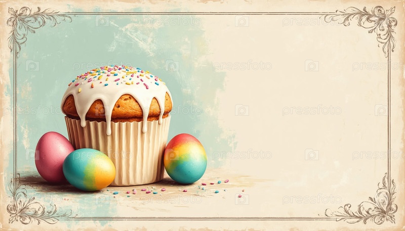Шаблон праздничных пасхальных открыток Дудл Кулич и яйца с копировальным пространством для текста