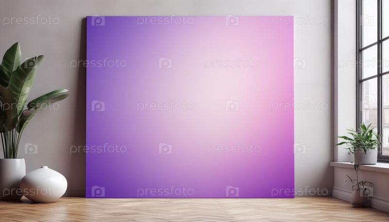 Большой пустой лиловый баннер на стене белого помещения