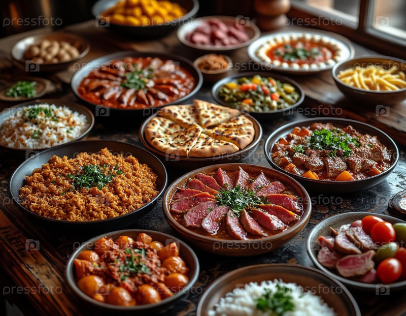 Ассортимент блюд из Восточной Азии, разнообразие традиционных продуктов