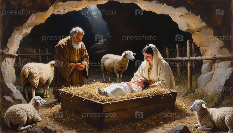 Мария Иосиф и ребенок в яслях Рождественский баннер