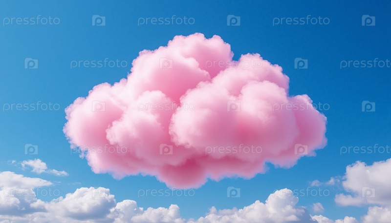 Прекрасное розовое и синее небо с пушистыми облаками, мечтательным фоном