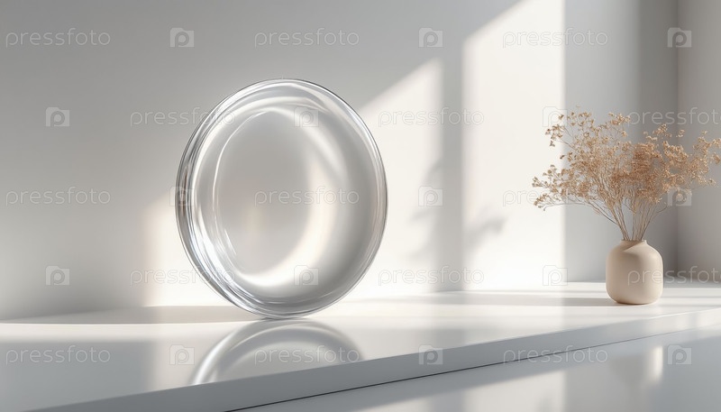 Прозрачный стеклянный эллипс минимальный белый фон