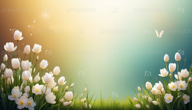 Фон весеннего цветочного баннера с растениями в нижней части
