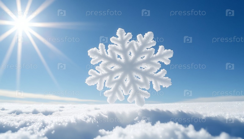 Гигантская белая снежинка на фоне синего неба, макро-зимняя фотография природы
