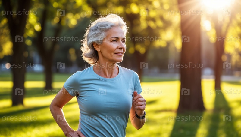 Пожилая женщина бежит в Sunny Park Active Retirement Concept