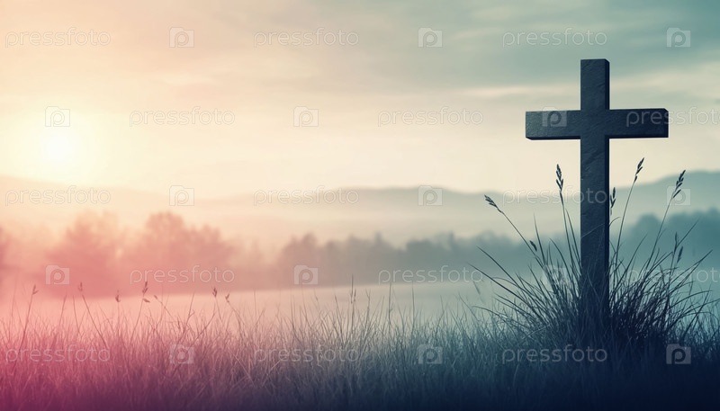 Восход солнца Минималистский фон с крестовым силуэтом Христианское знамя