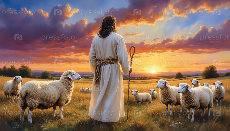 Иисус Христос Добрый Пастырь Цифровая живопись Христианское искусство