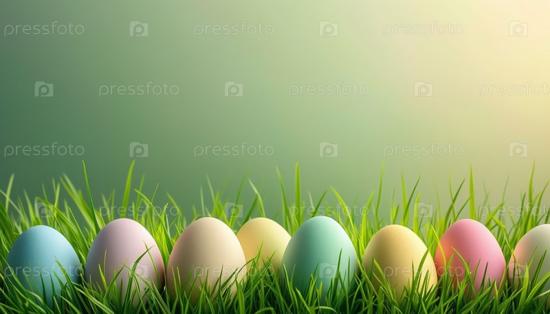 Окрашенные пастельные пасхальные яйца на мягком зеленом фоне внизу макета пасхального баннера