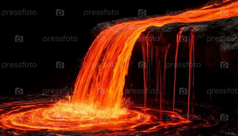 Горящая падающая огненная лава на черном фоне