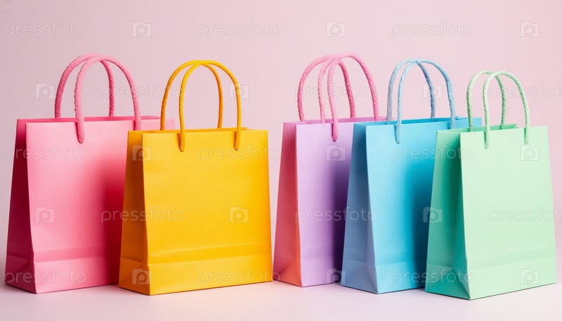Пастельная бумажная сумка для покупок минималистский дизайн