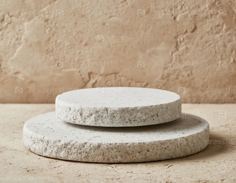 Бежевый фон с круглой бледной каменной платформой для отображения продукции