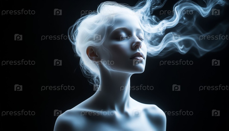 Полупрозрачная фантомная голова и плечи на темном фоне Паранормальный портрет