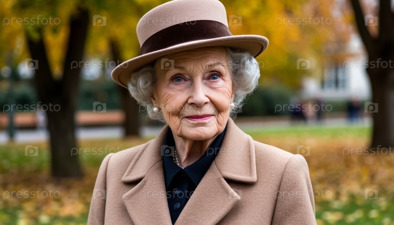 Элегантная старшая леди модная осень на открытом воздухе
